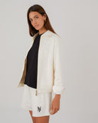 • Self-fabric elasticated waistband with interior drawstring